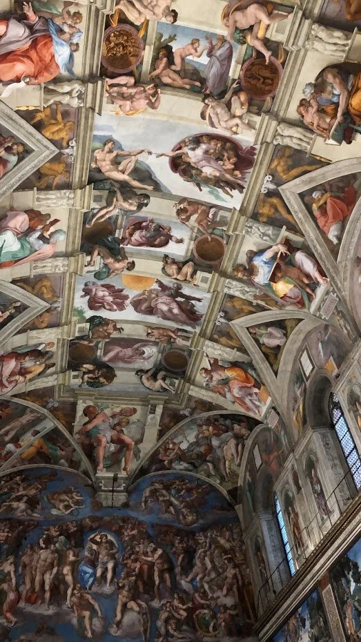 Vatican City: To end our trip, we spent our last day having breakfast at the Vatican museums. We took an Uber to the entrance before the sun came up and were led to an American breakfast buffet in the museums food court. We chose this voucher to get first dibs at the museum and avoid the line outside. We made our way through the rich Catholic history and went straight to the Sistine Chapel. As soon as you enter the chapel security warns not to take photos and when you look up at the art it blows you away. The detail and realism in the paintings are beautiful, the audio guide explains the development of Michael Angelo’s work and give you better insight into each painting. After we saw the Chapel we made our way out buying rosaries for our Catholic loved ones. The art is extravagant and obviously influenced by Catholicism. Despite not ever being baptized I was raised in a strong Catholic home. Therefore, I felt deeply connected to the moment even though my beliefs are more individually spiritual. However, I bought a gold cross necklace to commemorate the moment and we spent the rest of the night exploring Rome to prepare for our trip back home.